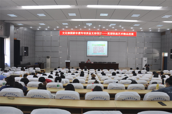 近日,由芜湖市非物质文化遗产保护中心、芜湖铁画协会主办的文化部国家级非遗专项资金支持项目“芜湖铁画艺术精品巡展”在我院举行。本次活动由我校图书馆、艺术设计系、团委共同承办。