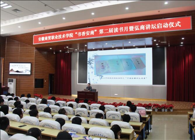 为深入贯彻学校第四次党代会精神,落实文化强校战略,推进阅读推广工作,丰富校园文化建设内涵,迎接第24个世界读书日,4月17日下午,图书馆与宣传统战部、工会、学生工作处、团委联合举办了"书香安商"第二届读书月暨弘商讲坛启动仪式。中国图书馆学会阅读推广委员会副主任、南京大学博士生导师、教授徐雁,中国图书馆学会第九届阅读推广委员会大学生阅读专委会副主任、南京艺术学院图书馆馆长陈亮受邀出席启动仪式,校党政领导、各系部处室负责人、教师代表、学生代表以及安徽日报社等媒体记者共400余人参加了此次活动。
