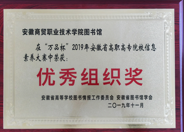 金风送爽,喜报传来。近日,安徽省高等学校图书情报工作委员会、安徽省图书馆学会共同主办的“万品杯”2019年安徽省高职高专院校信息素养大赛在安徽合肥落下帷幕,我校参赛代表队表现优异,斩获学生组比赛一等奖5项,名列全省第一,也是本次比赛唯一一所所有参赛选手均获得一等奖的院校。另外,我校还获得教师组说课比赛三等奖1项、优秀奖1项,优秀指导教师1名,学校图书馆荣获本次大赛的优秀组织奖。