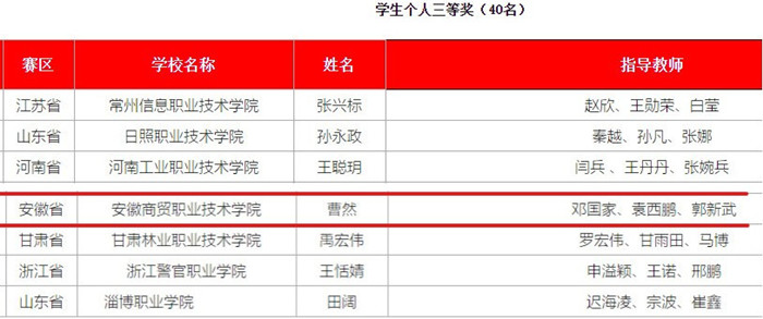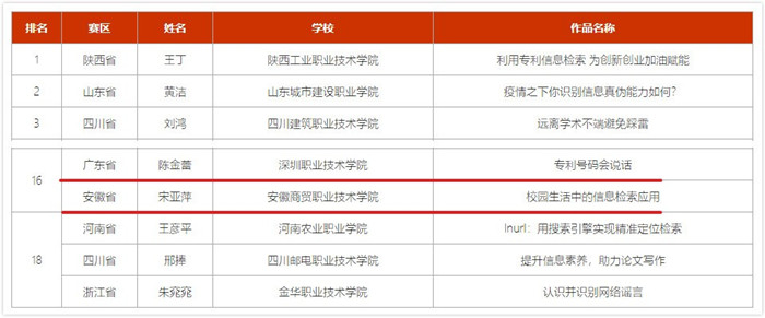 本次大赛由教育部高校图工委高职高专院校分委员会、高等教育文献保障系统(CALIS)管理中心共同主办,是全国高职高专院校信息素养教育最高规格的赛事之一。全国教师组微课赛共收到来自26个省、自治区、直辖市共计119个微课作品,5位行业专家根据大赛评审标准进行打分和排名,我校宋亚萍老师的微课作品《校园生活中的信息检索应用》最终排列第16位,荣获全国二等奖,这是本届大赛安徽省教师代表取得的最好成绩。学生组个人赛进入复赛阶段后,来自全国27个省(自治区、直辖市)的126名学生选手相聚云端,通过上机答题等环节展开激烈角逐,我校曹然同学最终获得三等奖。本次大赛教师组和学生组均创造了我校师生代表在此类比赛中的历史最好成绩,展现了我校师生良好的综合素质与精神面貌。