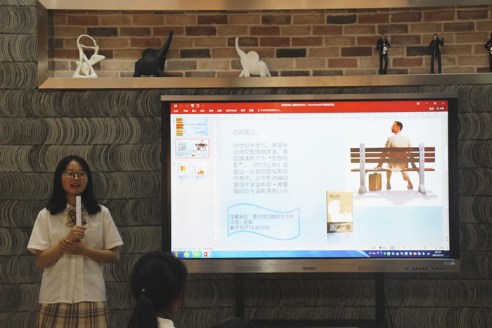 现场分享环节,大家激烈讨论了有关《阿甘正传》这本书或者电影中印象最深刻的部分、为什么在车上珍妮愿意给阿甘让座位等问题,学生们结合自身实际交流了感想。性格即命运,一个人能取得成就不一定要拥有最聪慧的大脑。大部分学生表示阿甘善良忠诚的性格是他在各个领域都能发光的原因;对于阿甘克服自身缺陷的勇气,学生们们也深有感触,表示在以后的生活中要勇于克服自卑,热爱自己,热爱生活。甚至有学生以自己做例子,讲述了她自己从自卑到自信的蜕变过程,重获了另一番“新生”。作为此次活动的接力,主持人向大家推荐了《阿甘正传》、《傲慢与偏见》两本书,告诫学生们抛却虚荣和浮夸,保持本真,璞玉浑金。